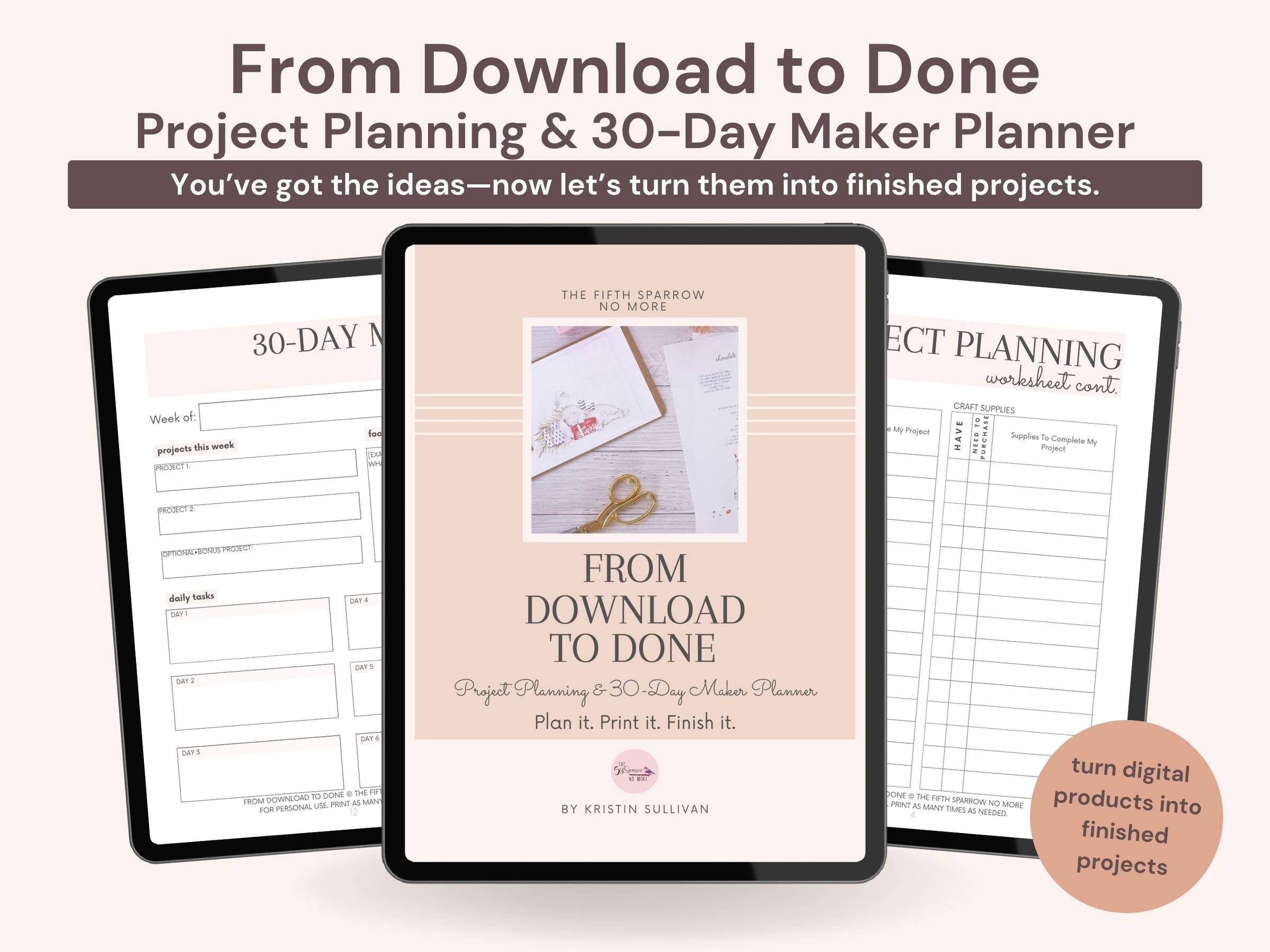 From Download to Done is a simple, printable planning bundle designed to help you actually use the ideas you just discovered instead of letting them live in another folder.